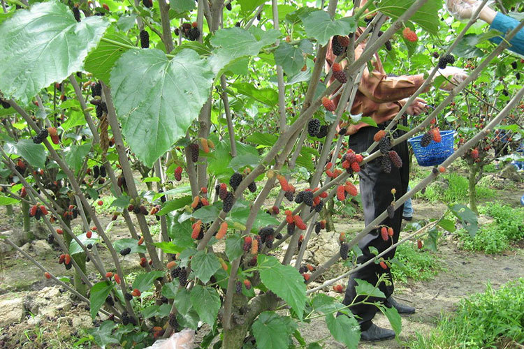 果桑苗春季每亩最高可以种植500株,利用大棚栽培可以提前到春节前后采收,其效益是露地栽培的15-20倍,所以紫椹种植是当前的农业结构调整的见效快、效益高、即可卖果又可以养蚕的最有发展前景的农业特色产业。
